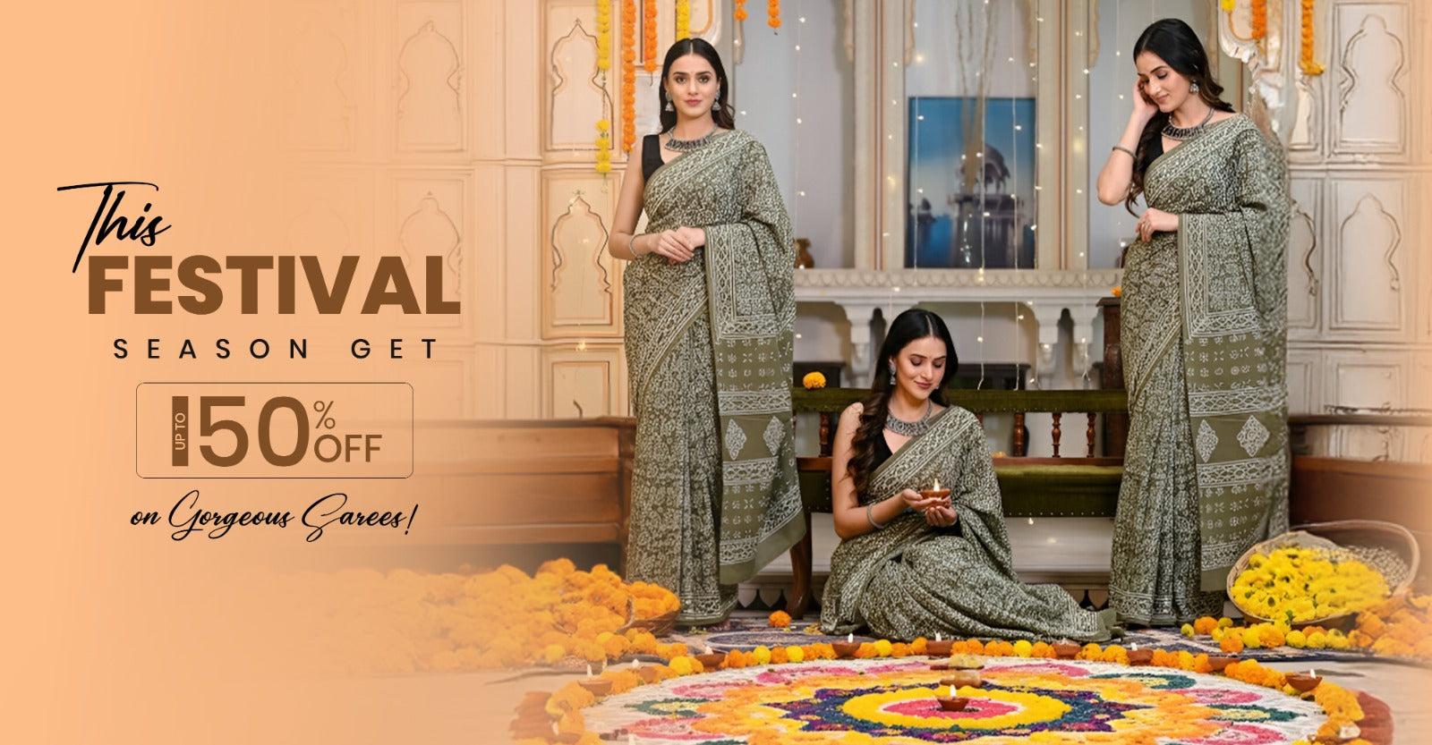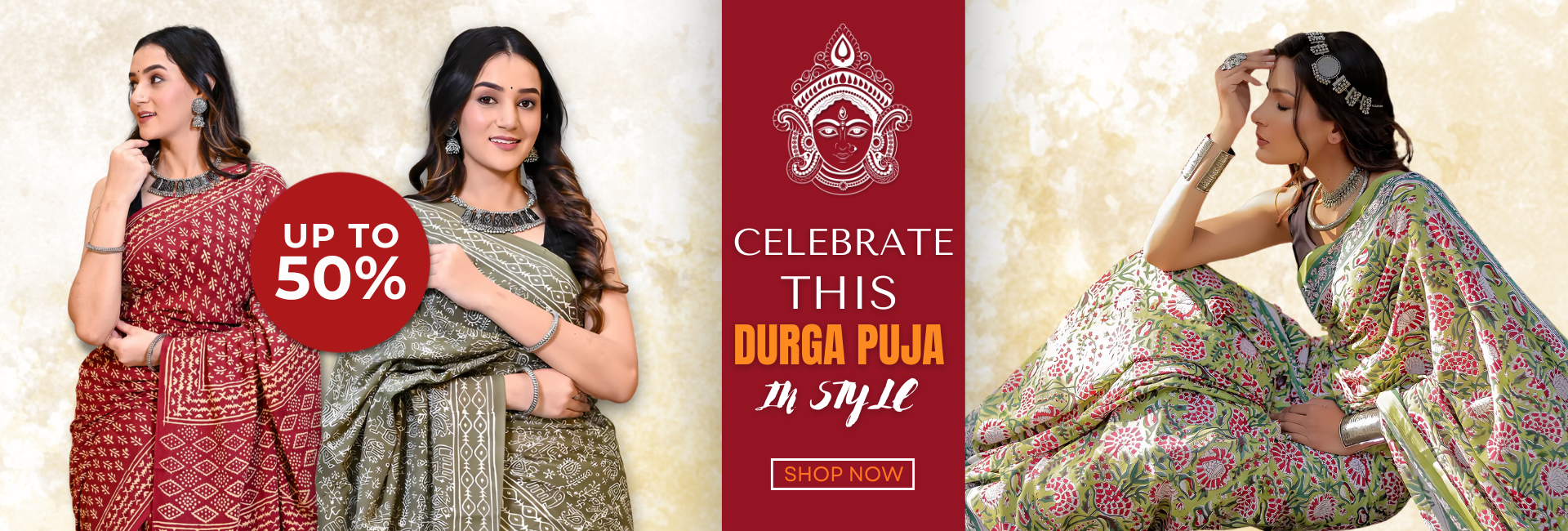 Indigo Blue Daabu Block Print Pure Cotton Saree
