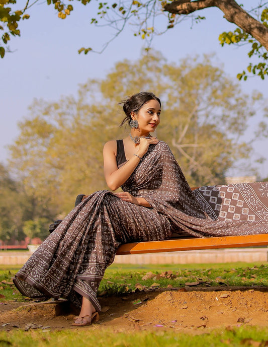 Khajur booti Bagru Bagh Block Print Pure Cotton Saree