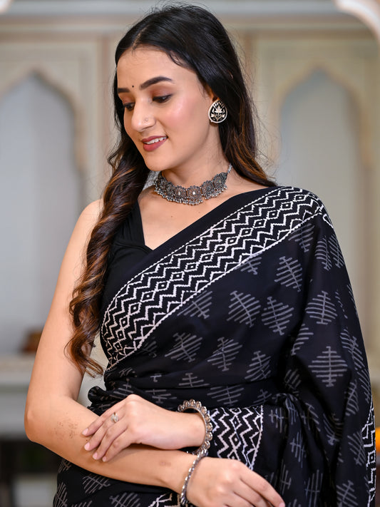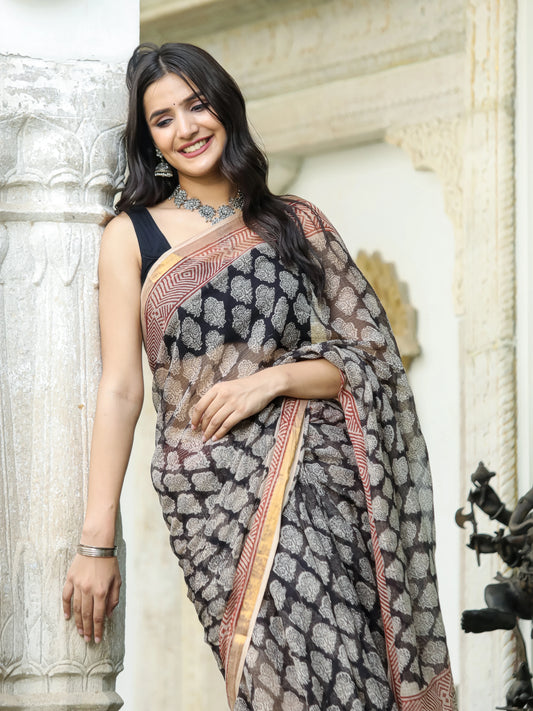 Bagru Print Jaal Hand Block Pure Cotton block print saree
