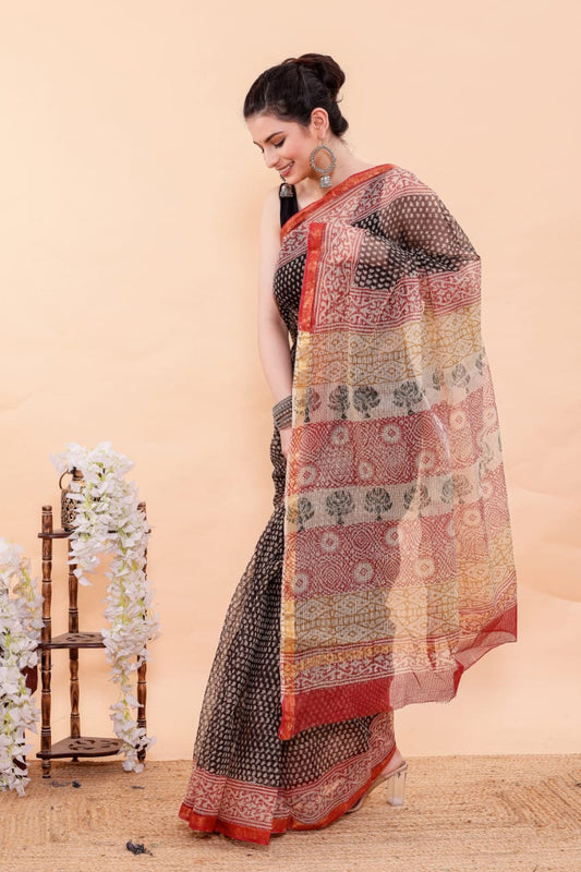 Bagru Kairi Printed Hand Block Kota Doria Saree