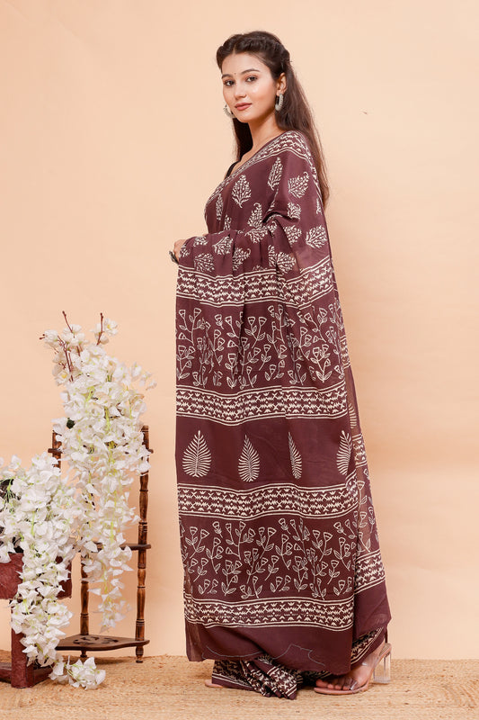 Hand Block Printed Mul Cotton Saree