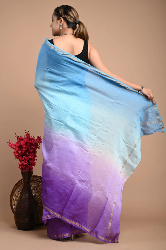 Hand Block Printed Chanderi Silk Saree (Indigo daabu)