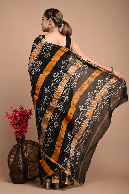 Hand Block Printed Chanderi Silk Saree (Batik Print)
