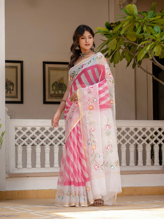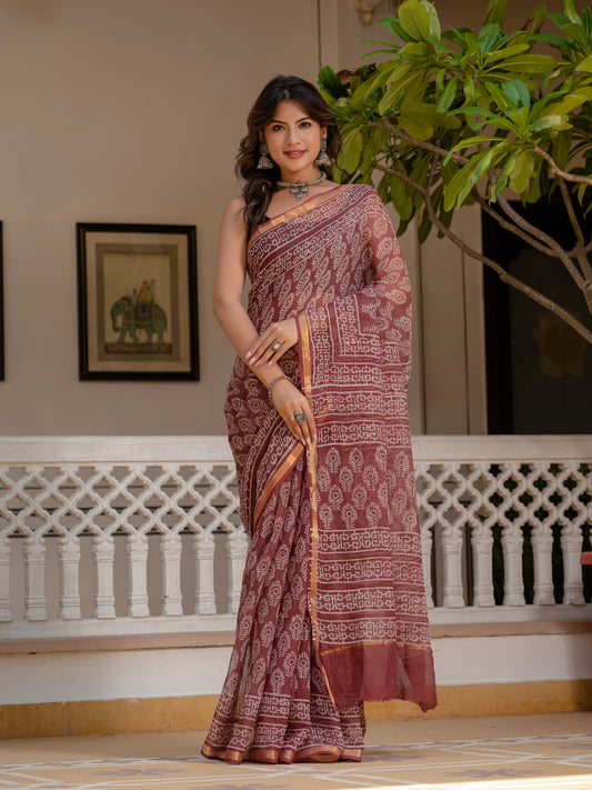 Bagru Kairi Printed Hand Block Kota Doria Saree