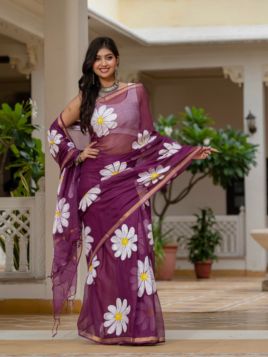 Wine HandPainted pure Kota Doria sareeRegular price Rs. 1,999.00Regular priceUnit price perRs. 3,400.00Sale price Rs. 1,999.00Sale