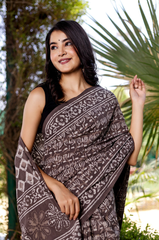 Indigo Daabu Booti Block Print Pure Cotton Saree