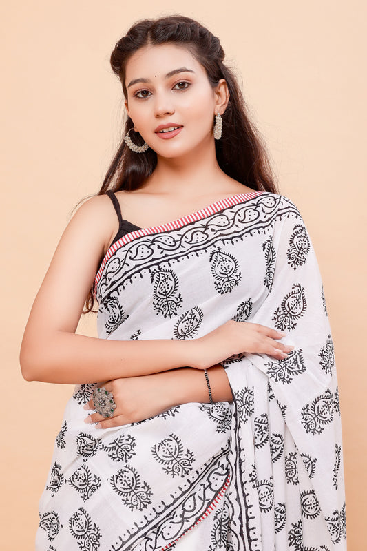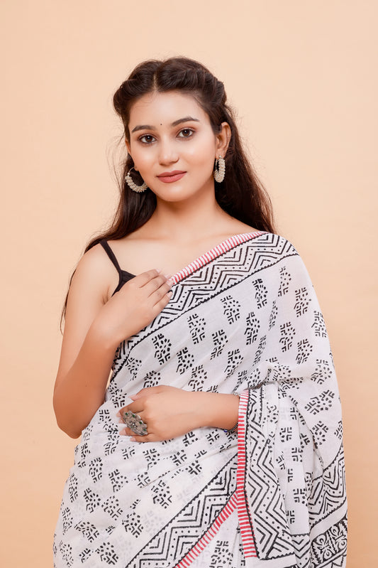 Hand Block Printed Mul Cotton Saree