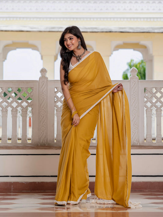 Mustard saree with tussells