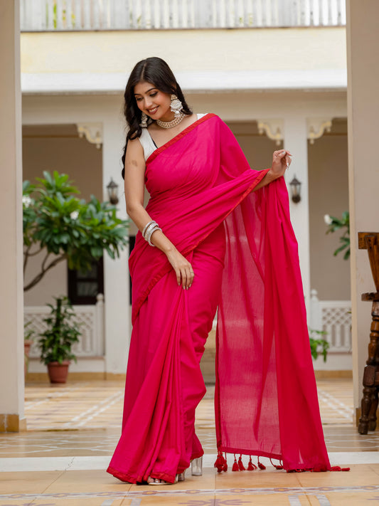 Rani pink saree with tussels