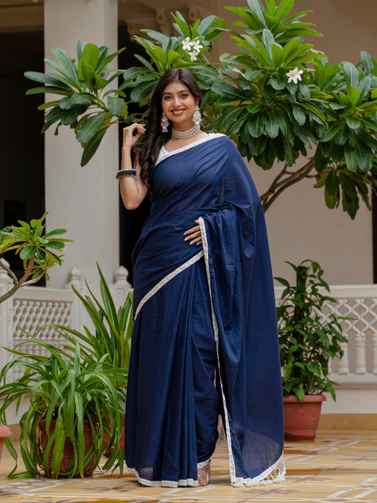 Blue saree with tussels