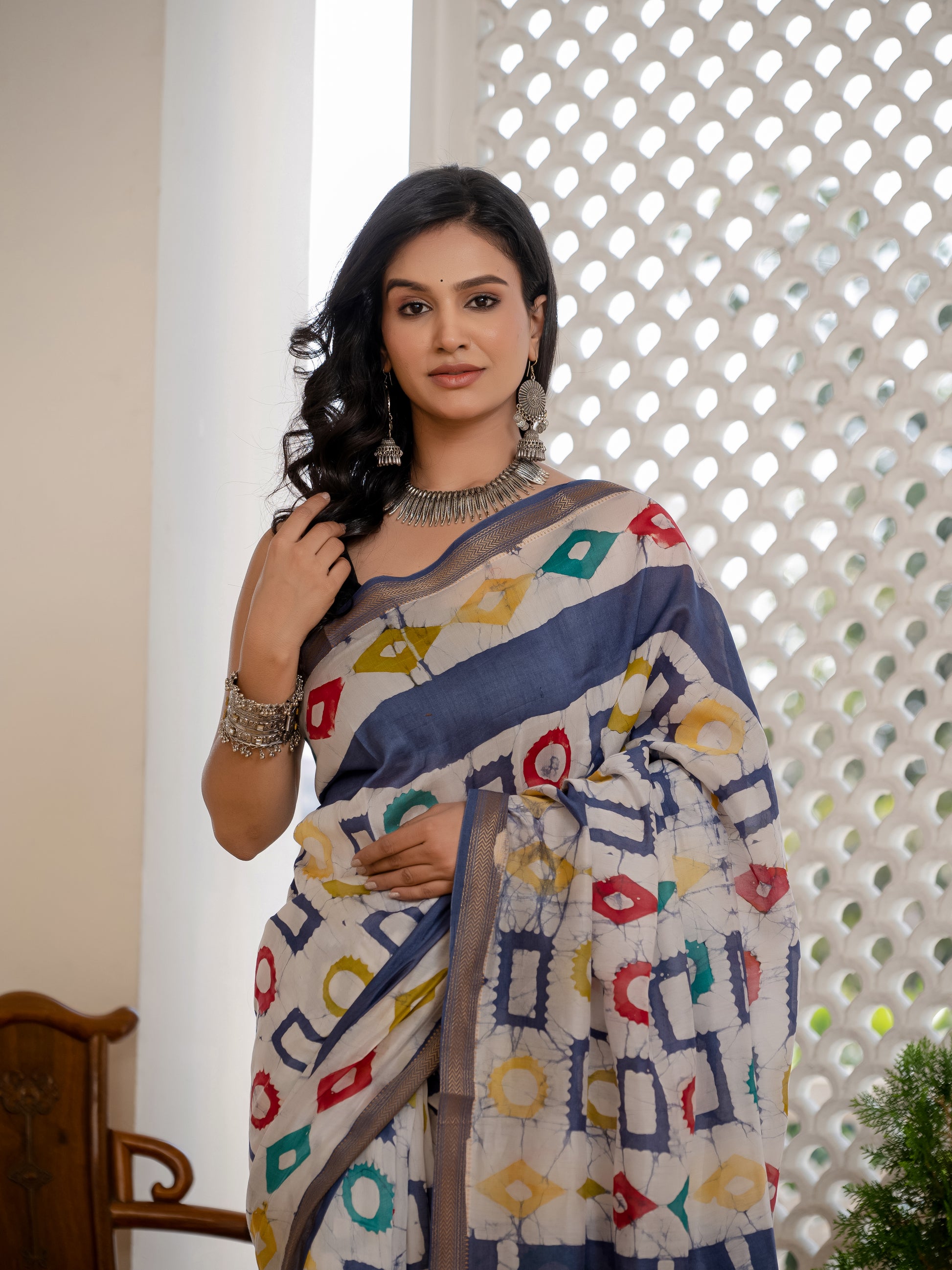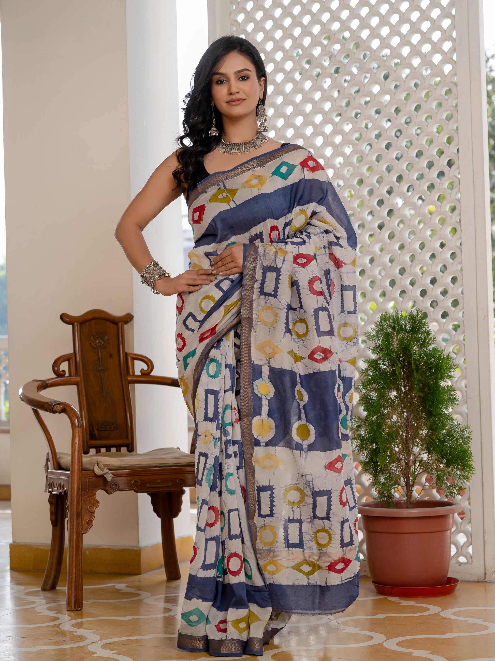 Grey Batik Chanderi Silk Saree