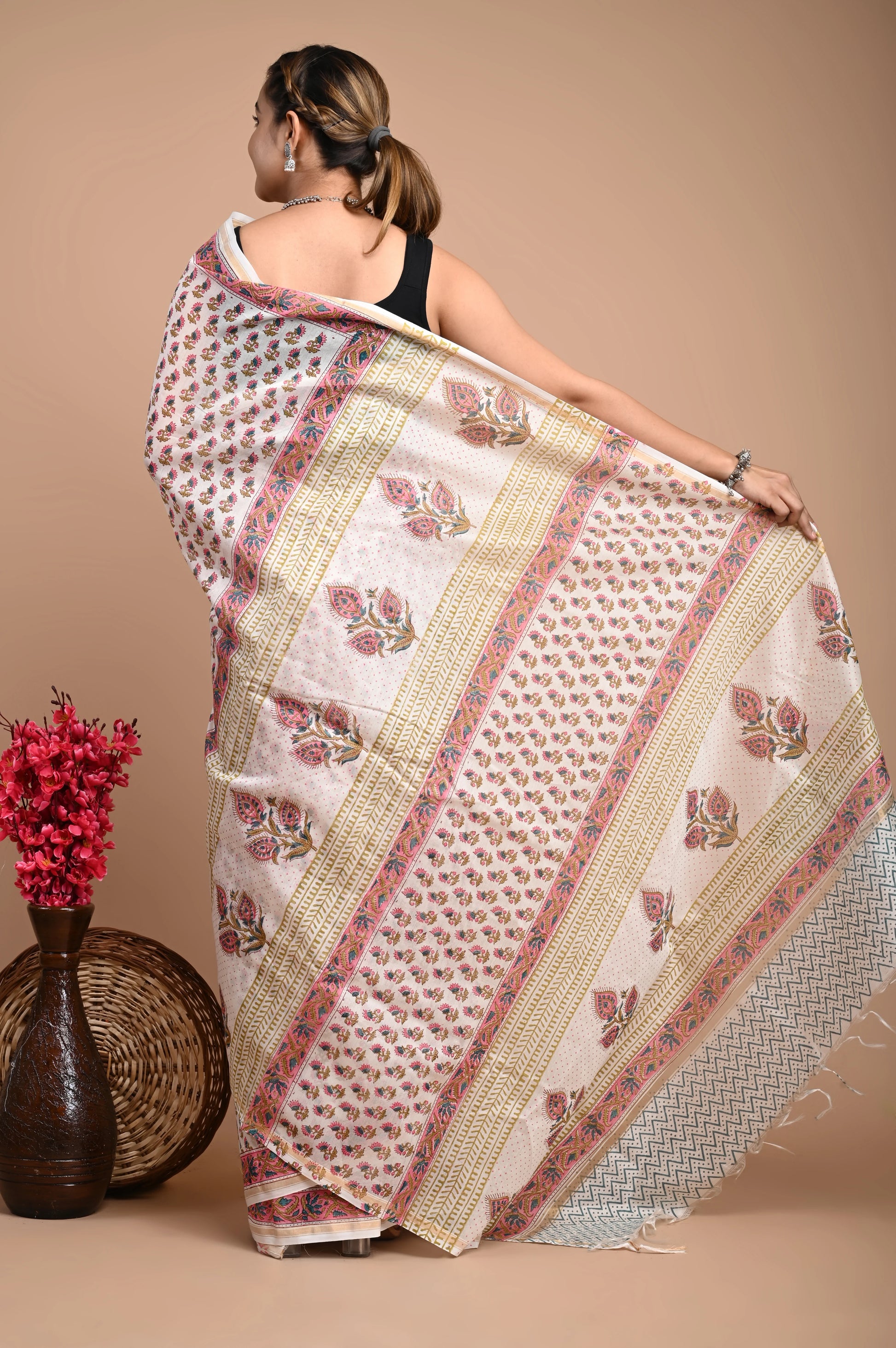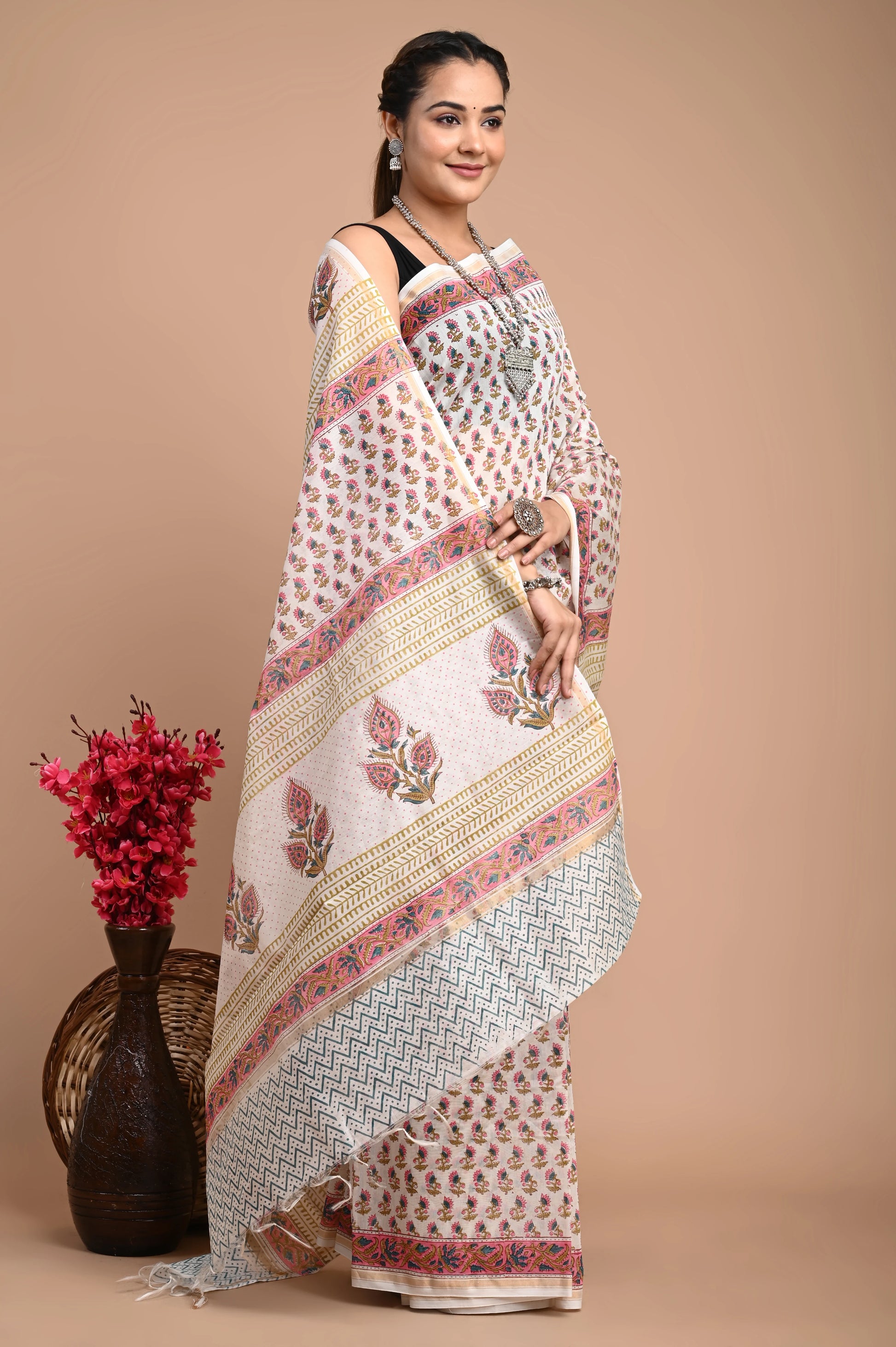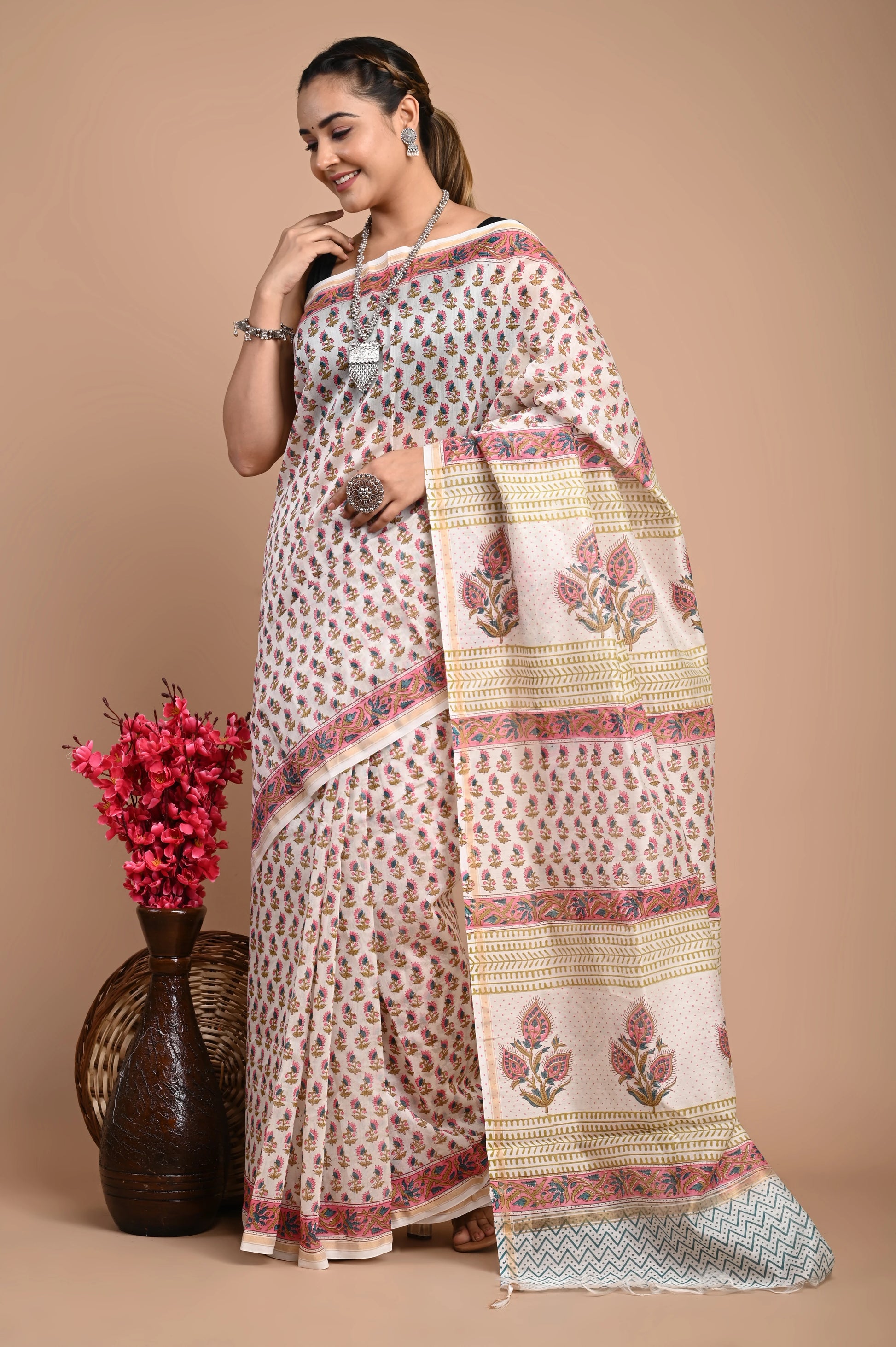 Hand Block Printed Chanderi Silk Saree