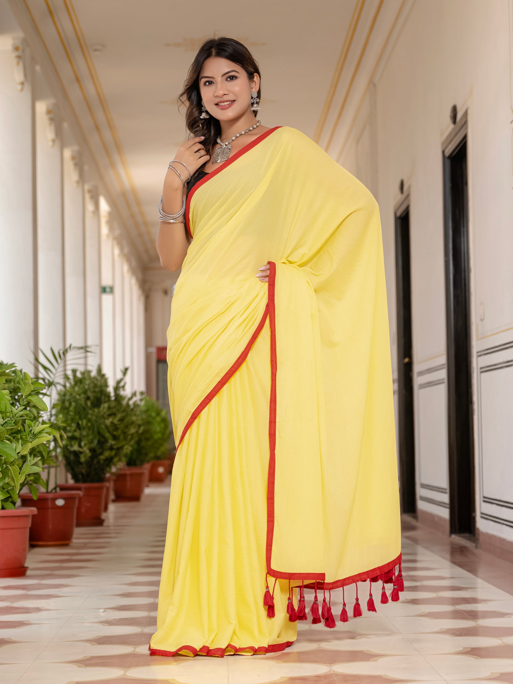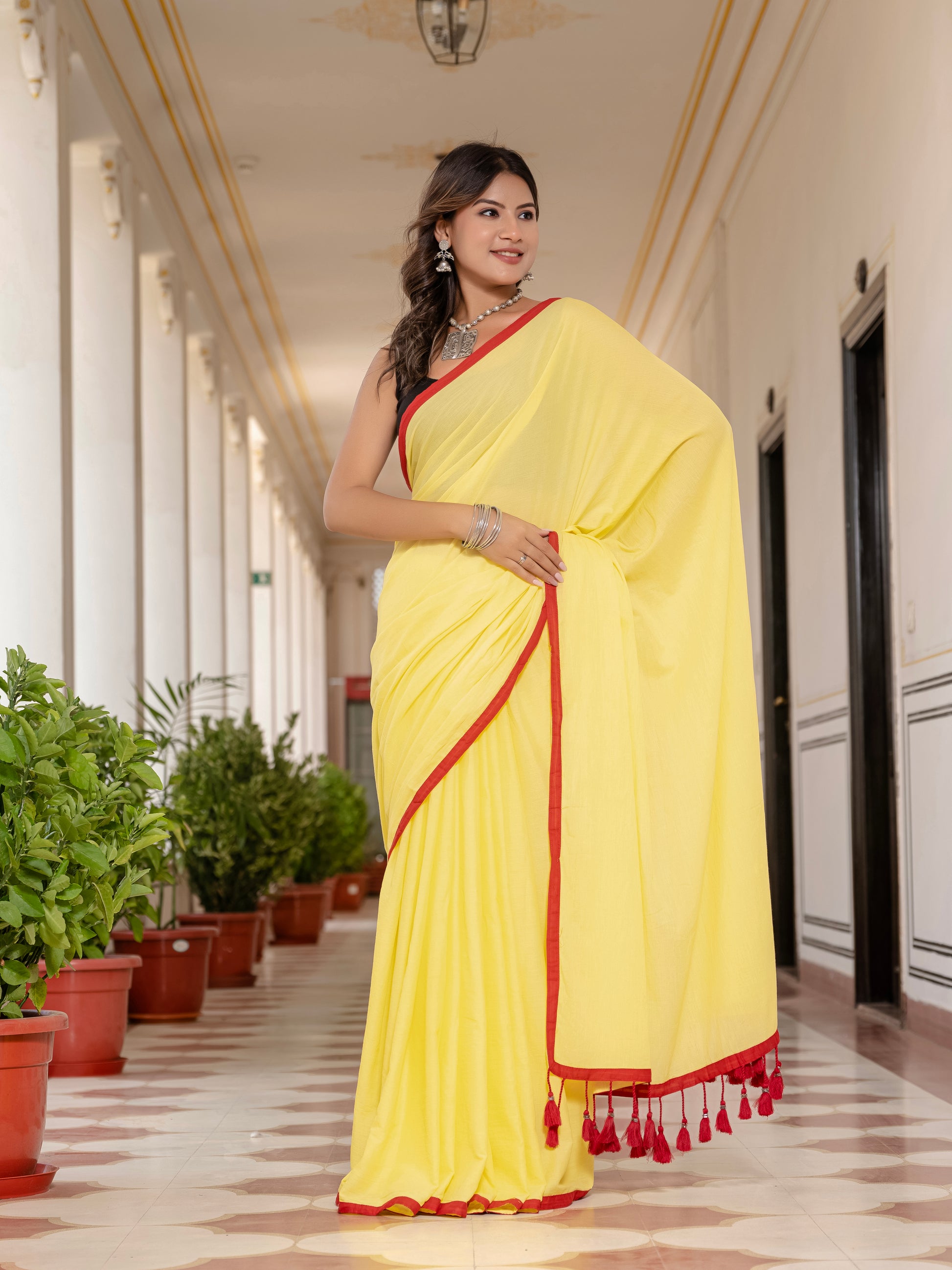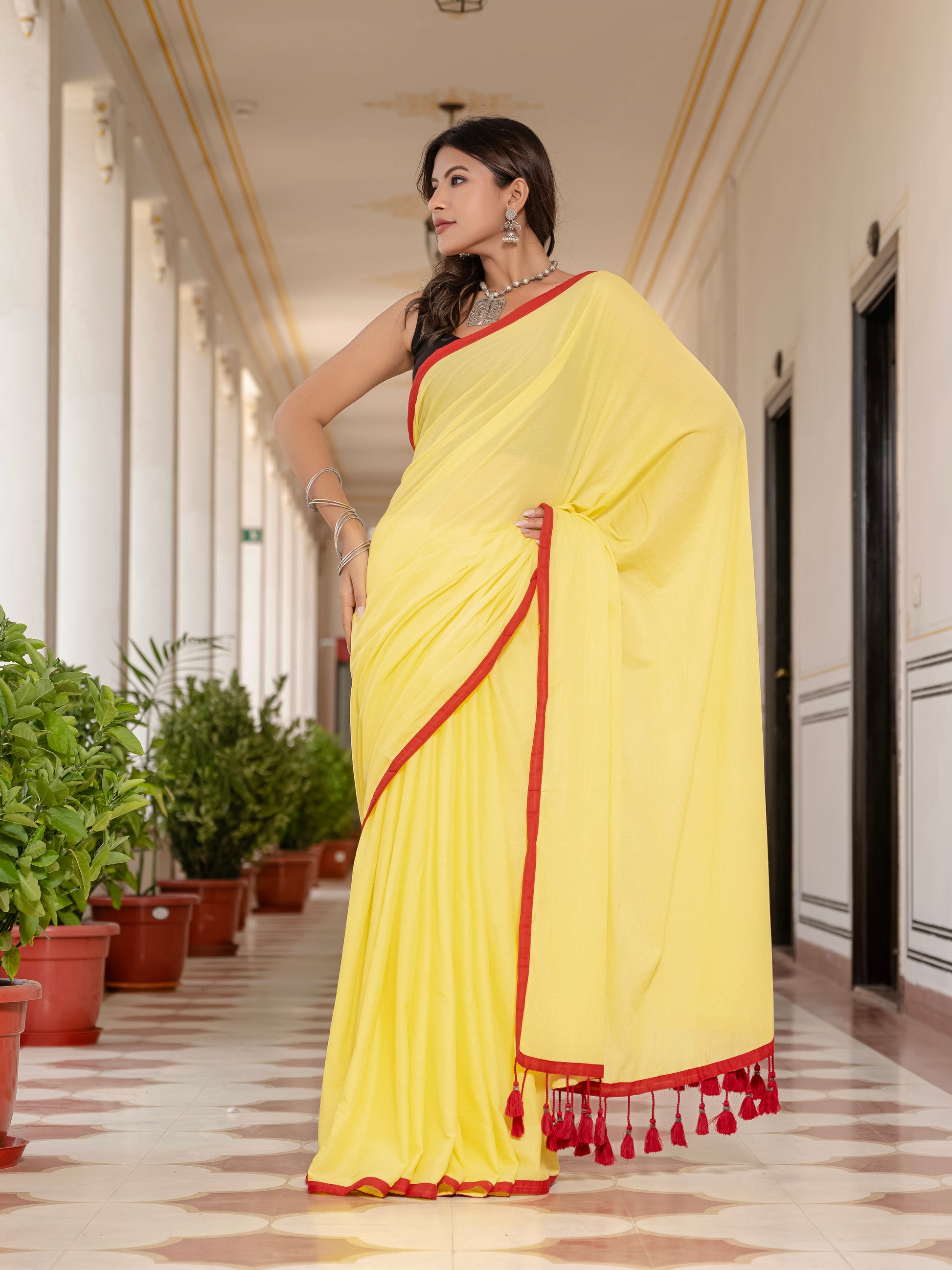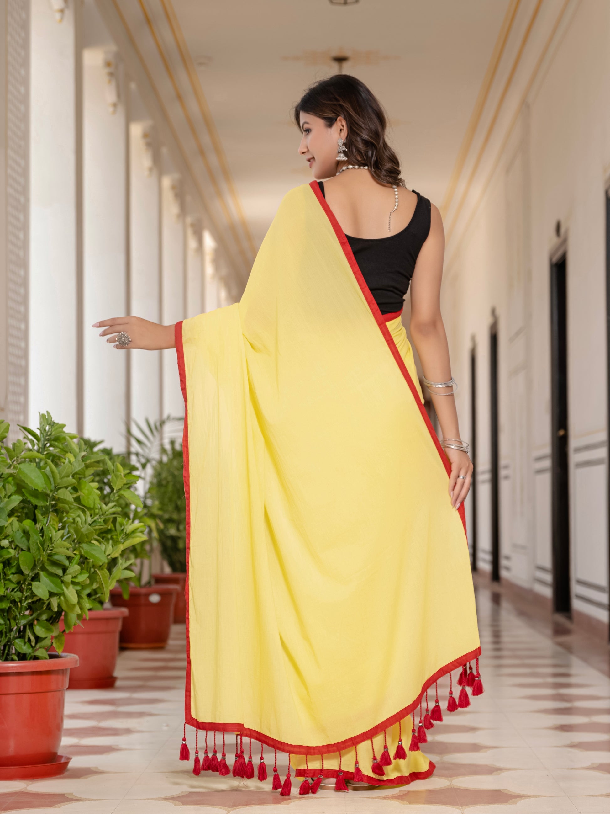 Yellow Tussells Pure Mul Cotton Saree