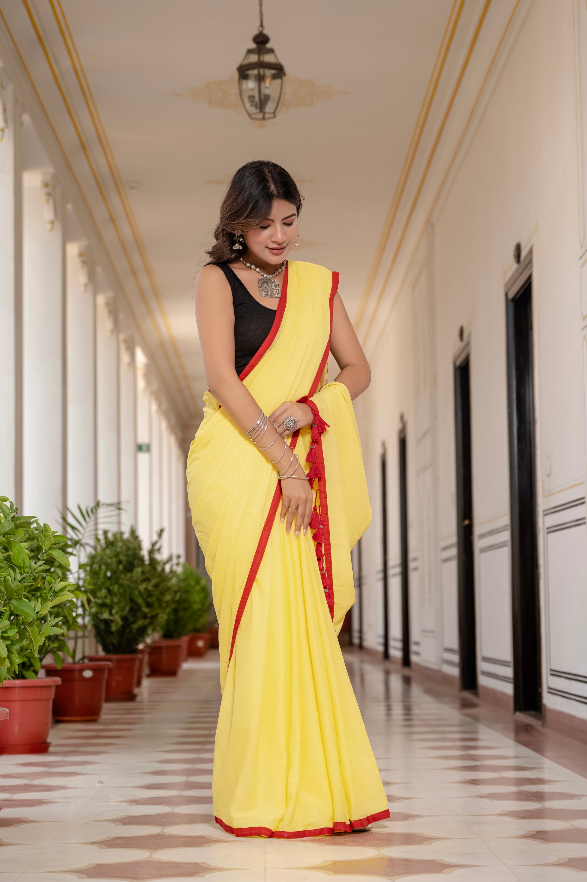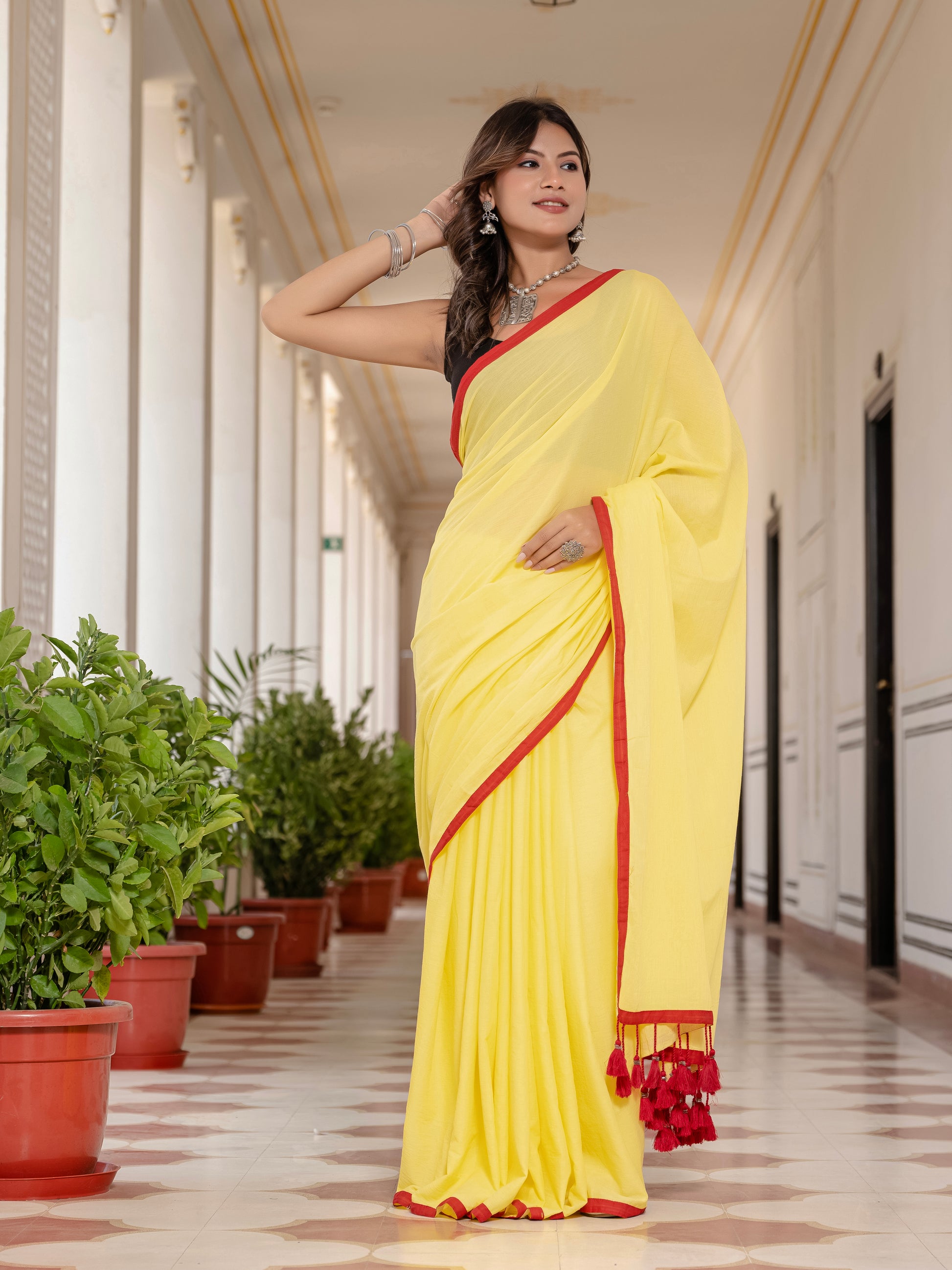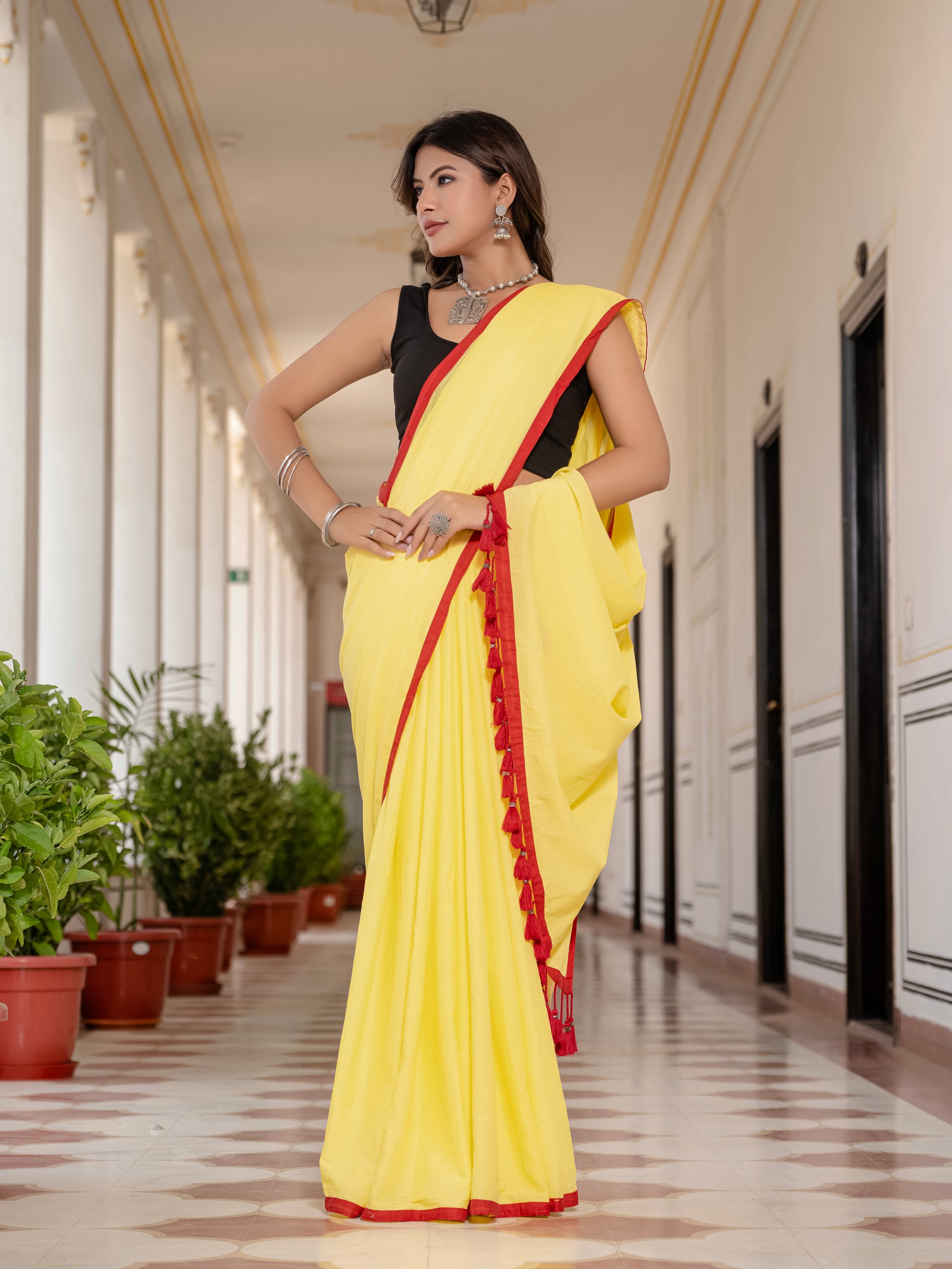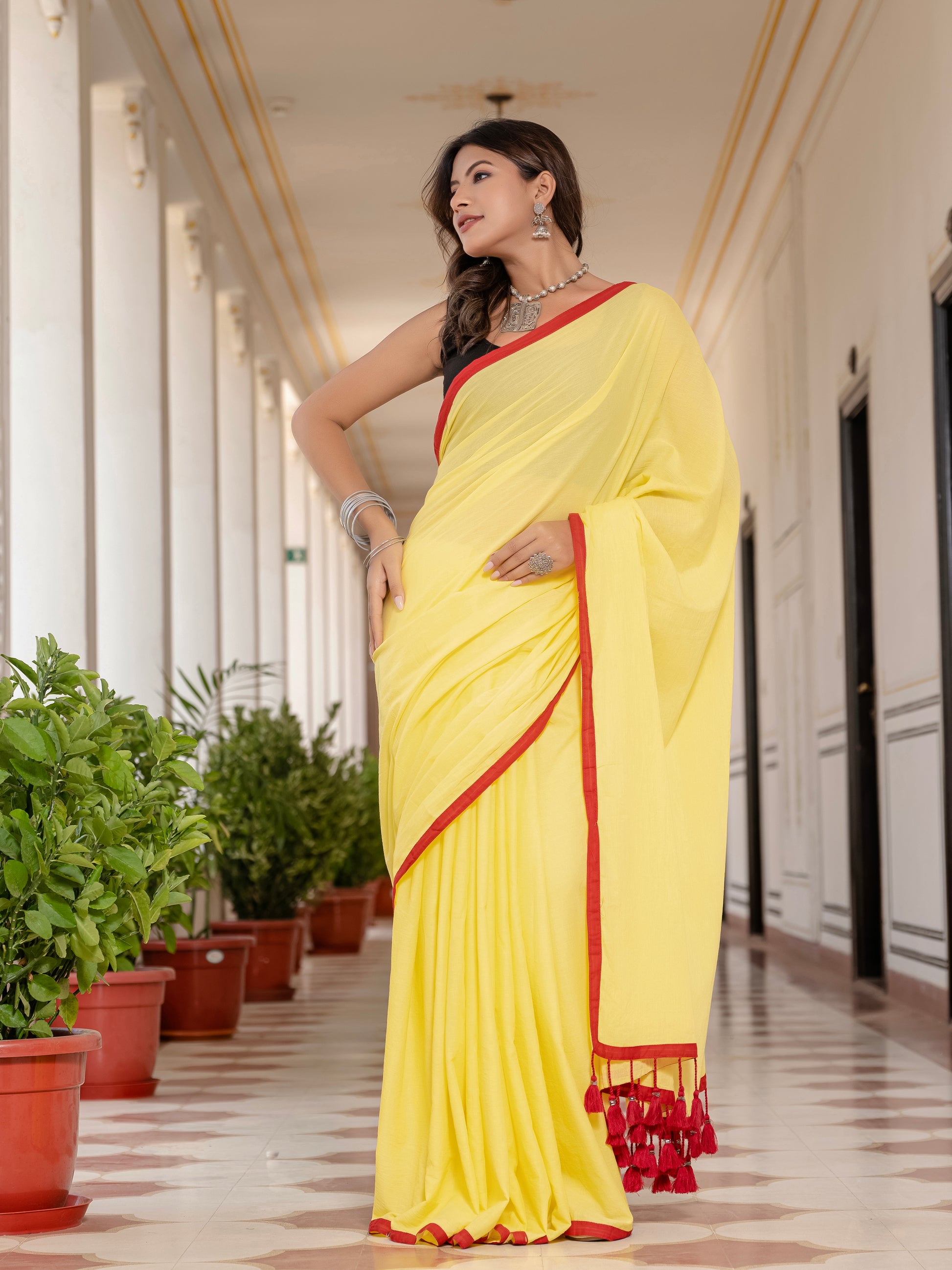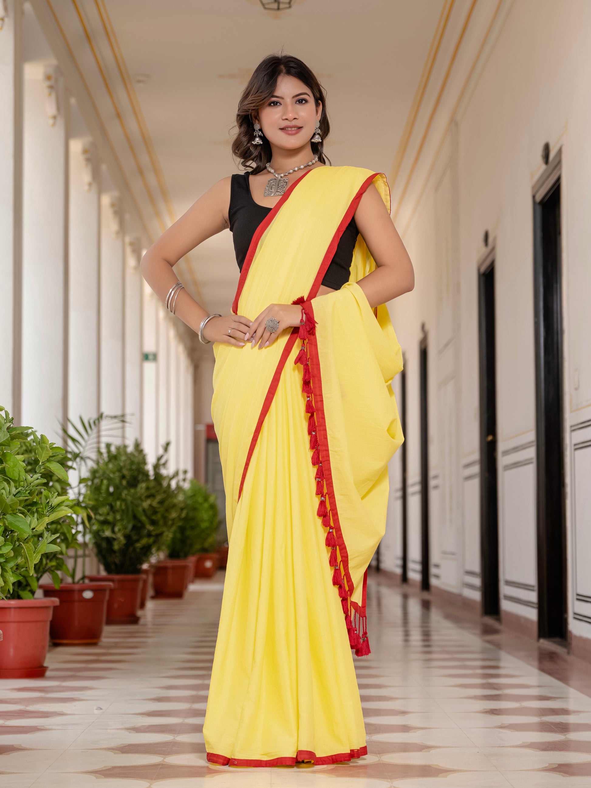 Yellow Tussells Pure Mul Cotton Saree